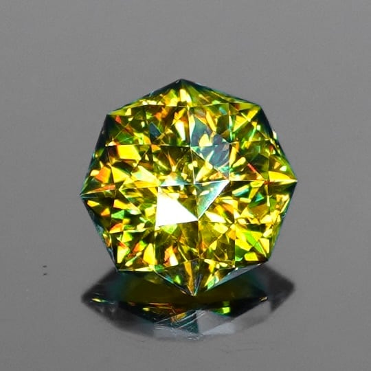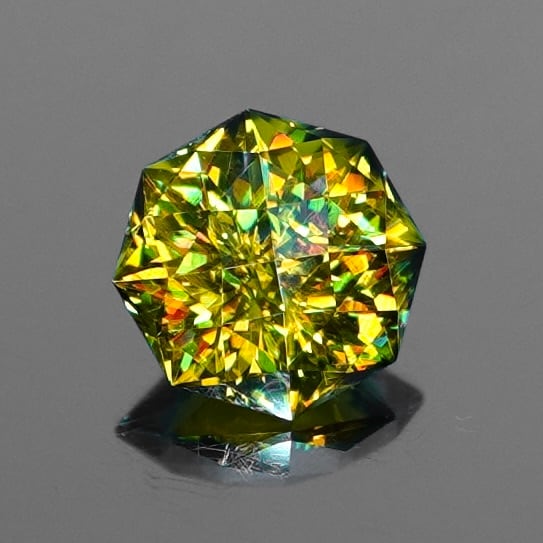 精緻なファセットが、光を受けるたびに複雑な干渉を生み、