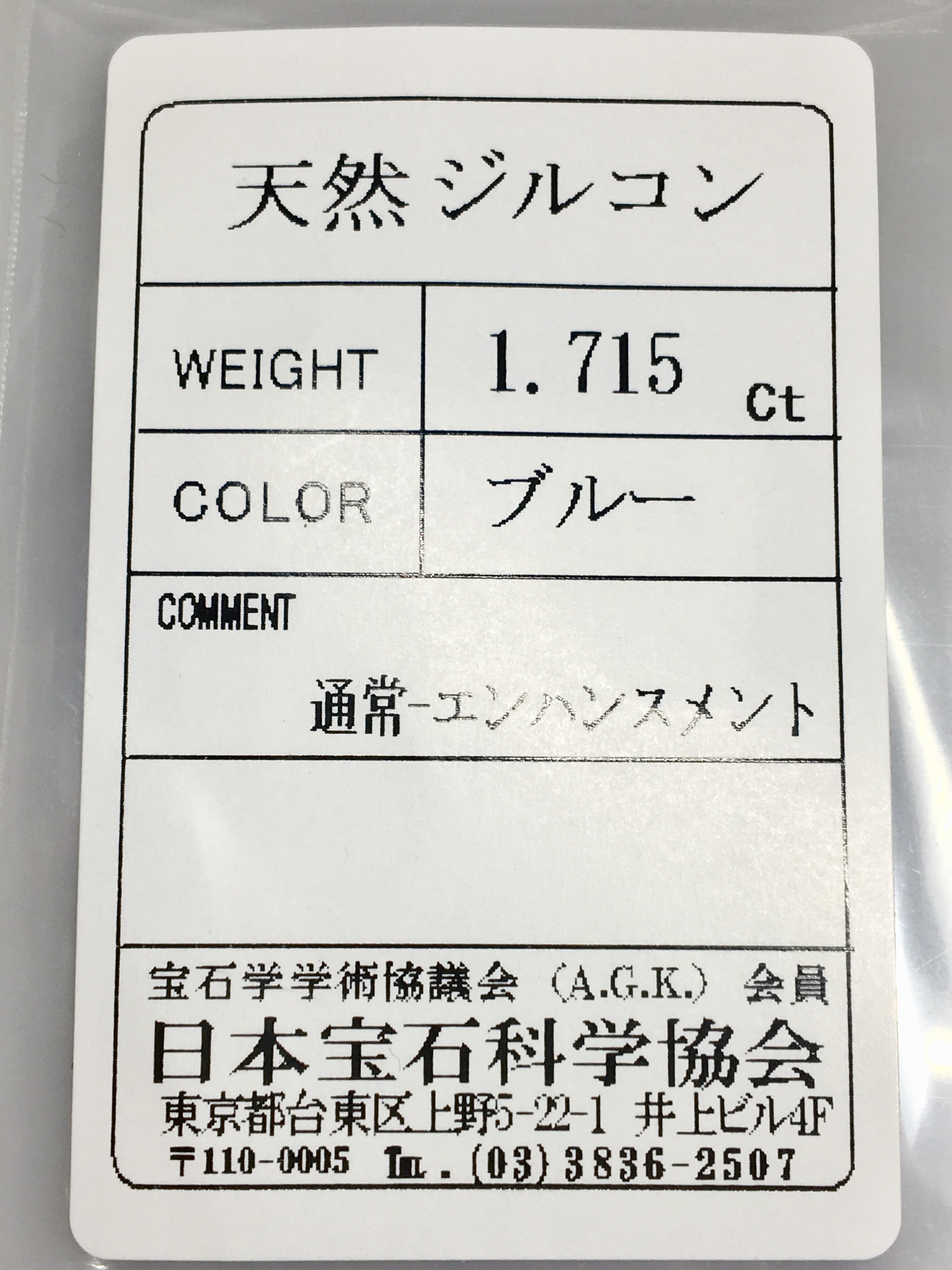 ビビッドな"エナメルブルー" 1.7ct UP 天然 ブルージルコン
