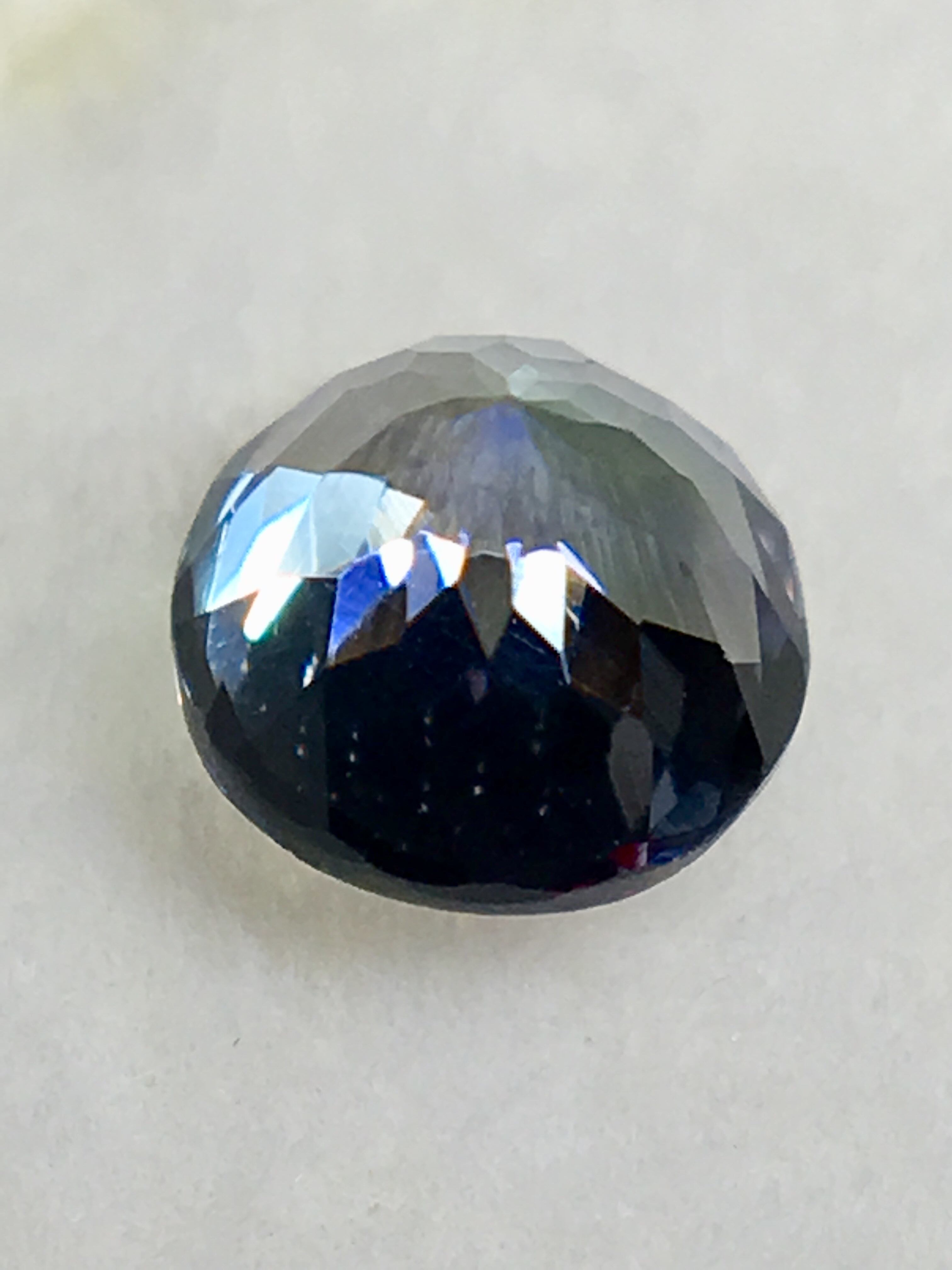 さて、今回の非加熱タンザナイトですが、混ざり合うブルーとグリーンが妖しげな魅力を醸し出しております。また、ラウンドシェイプへと研磨を施すことで、更にこのストーンのブリリアンスを高め、妖しげな美しさに凛とした印象を加えます。