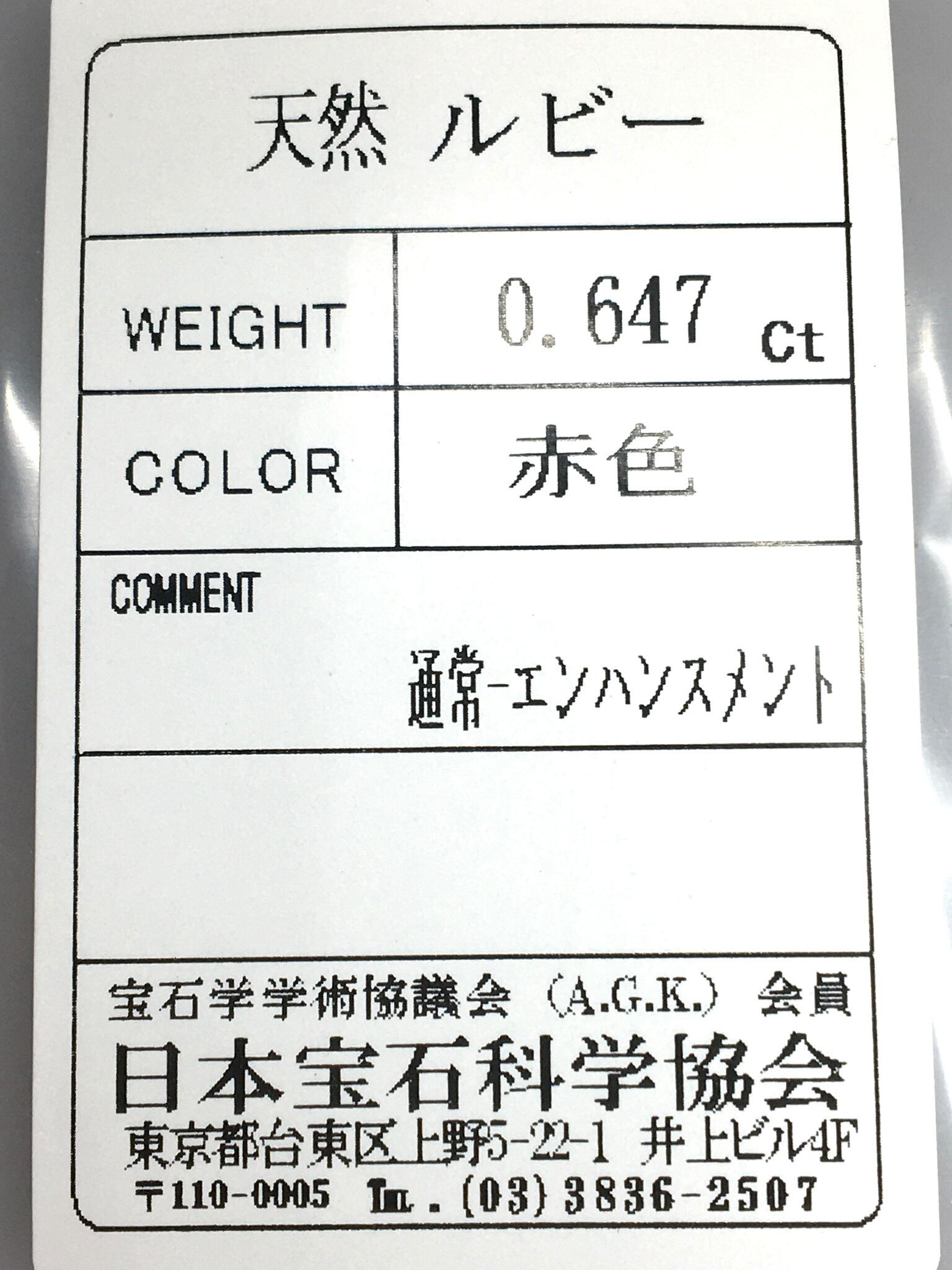 今回のストーン、0.64ctとルビーとしてはかなりの大粒で、特にその魅力はブリリアンスにあります。