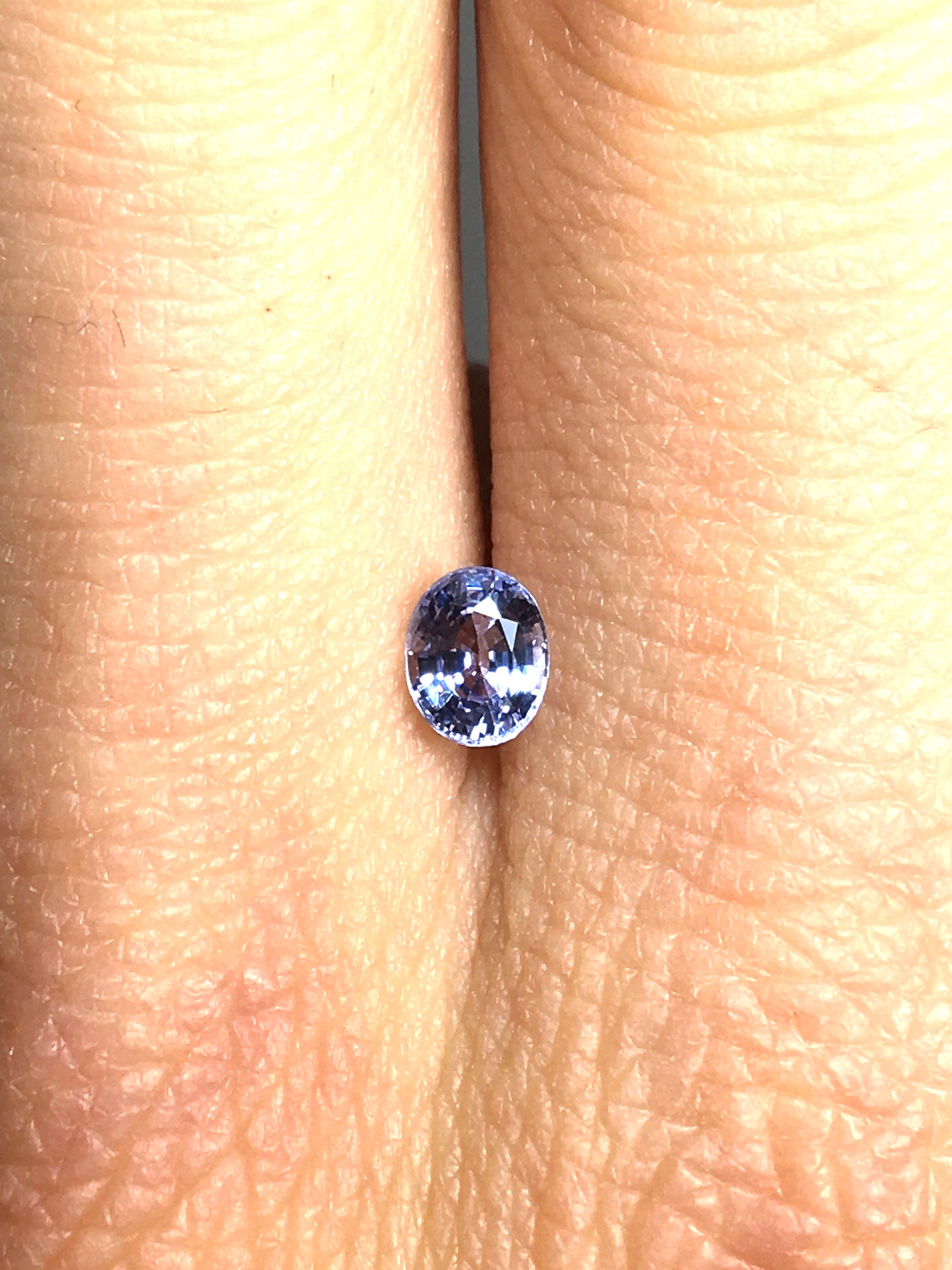 今回ご紹介するサファイアは、「ホワイトサファイア」に近い、ほのかな青色が魅力のサファイアです。「アイスブルー」とでも形容いたしましょうか、そのみずみずしく涼やかな雰囲気と、高い透明度、そして輝きが特長です。