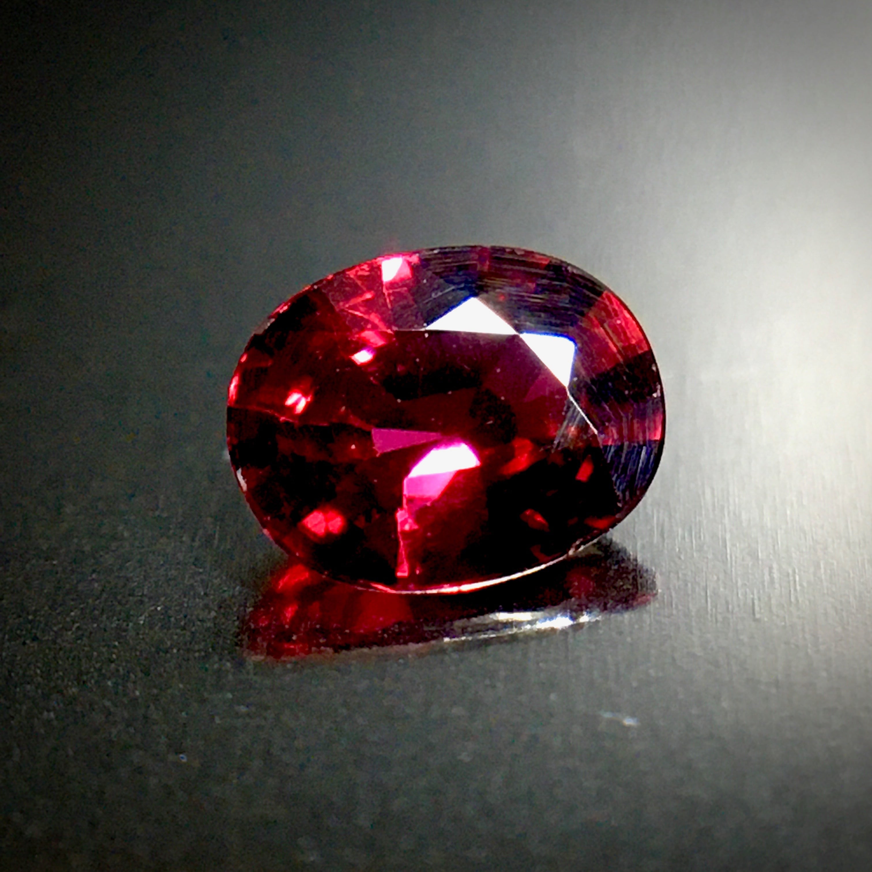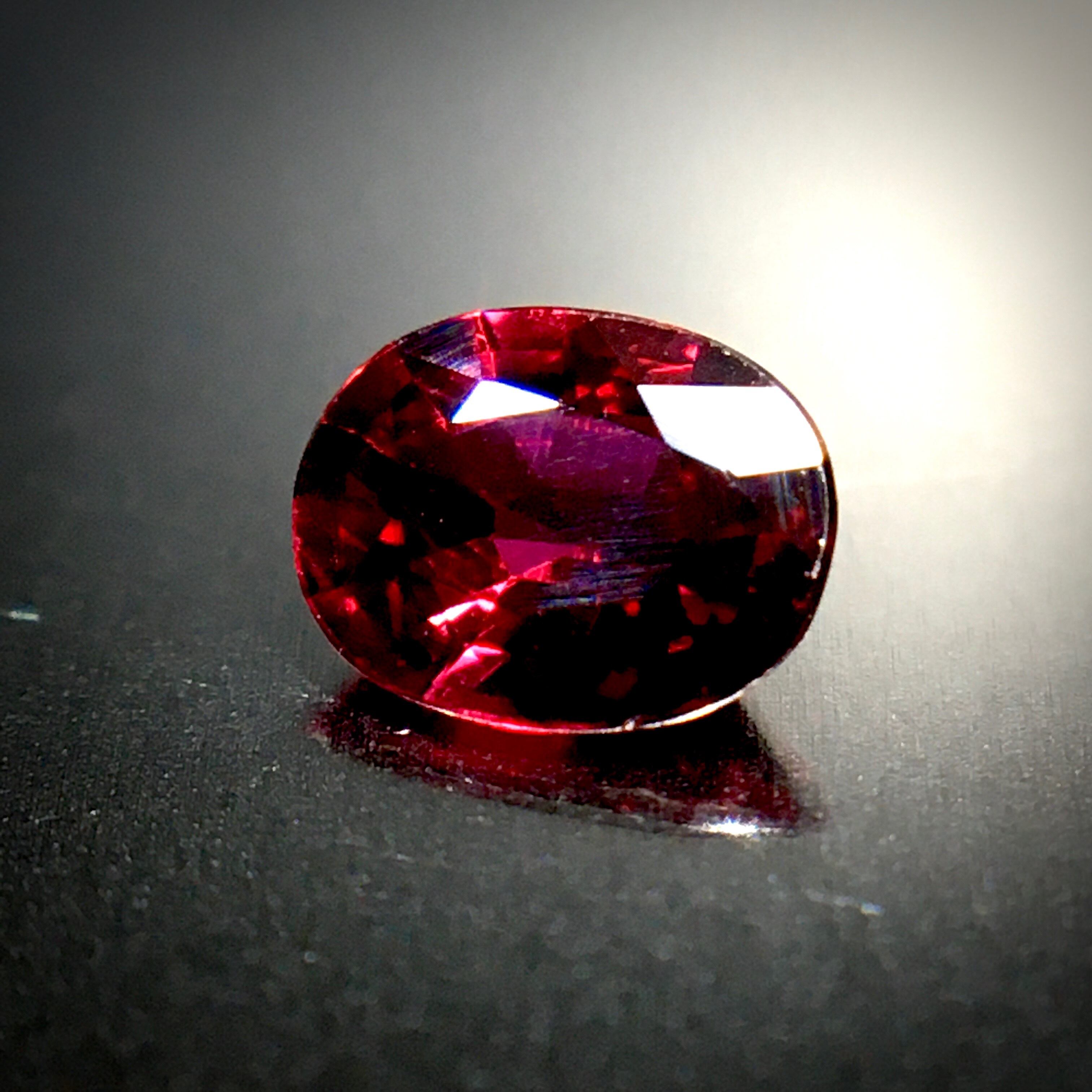 さて、今回のストーン、色の抜けもほとんどなく、精緻に施されたファセットからは深紅の輝きを放ちます。