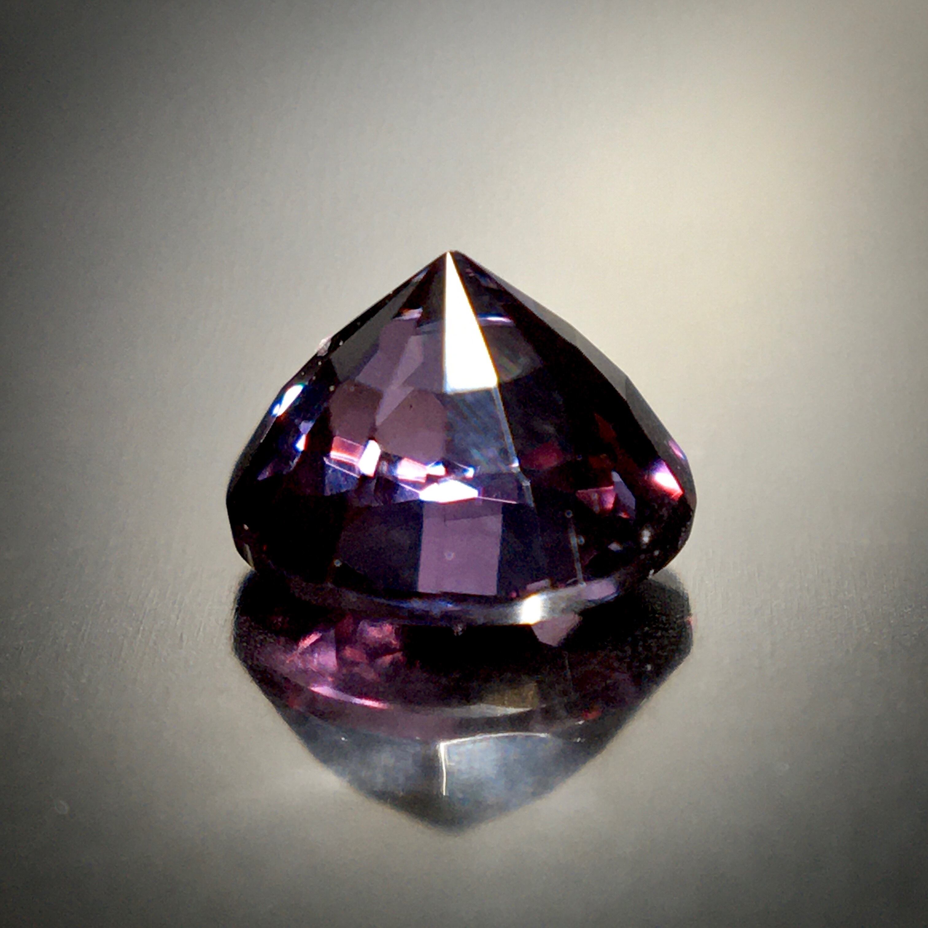 今回ご紹介するベキリーブルーガーネット、太陽光下では落ち着きのあるブルーイッシュバイオレット、そして白熱灯下では非常に鮮やかなレディッシュパープルを呈し、角度を変える度、宝石内部から真っ赤なブリリアンスが放たれます。クールなバイオレットと、情熱的な赤色の印象で魅了します。
