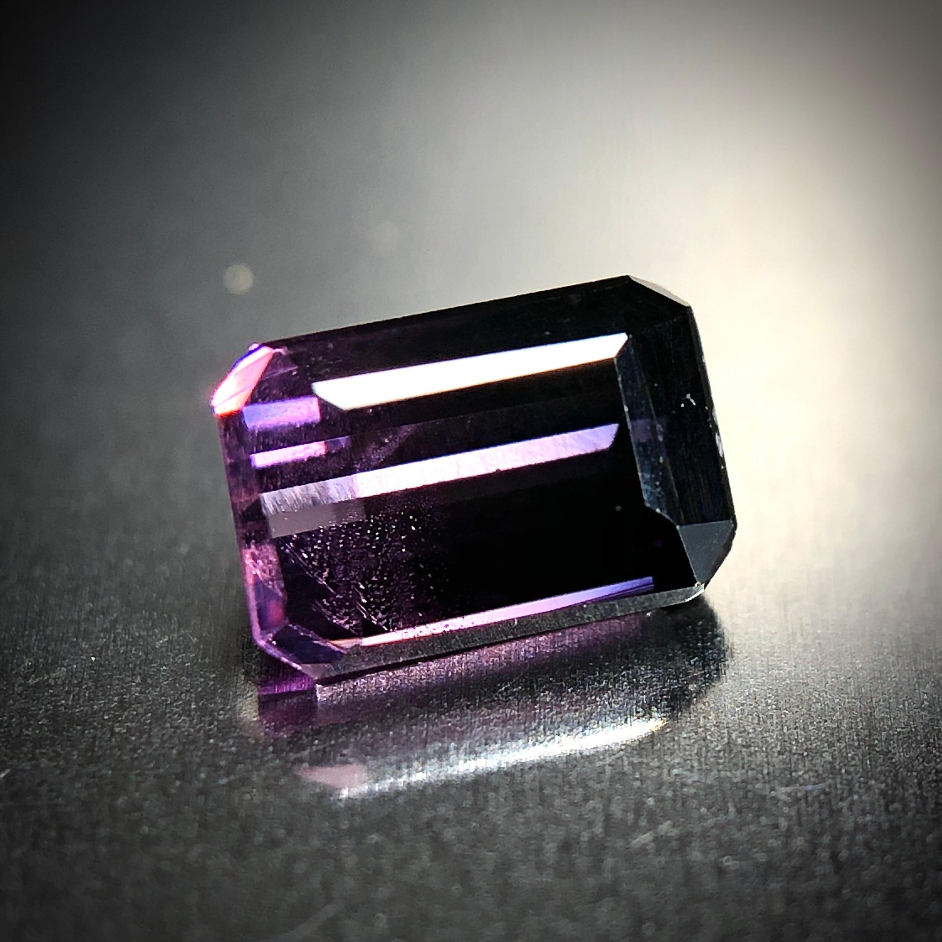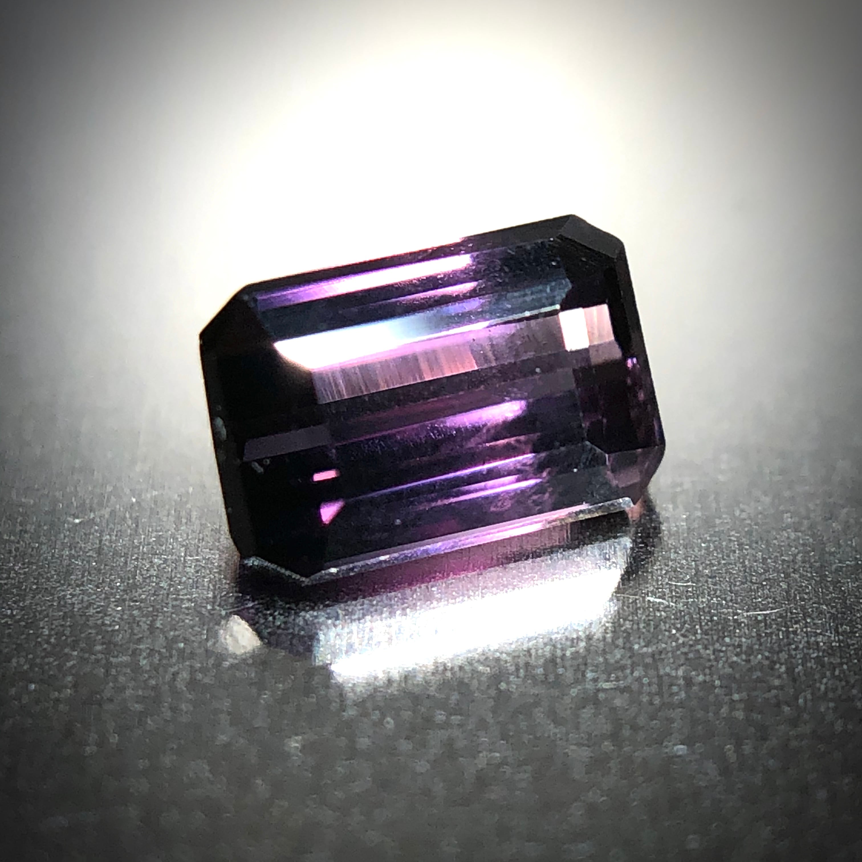 結晶の歩留まりはあえて度外視し、バイカラーを活かすためにエメラルドカットに研磨。