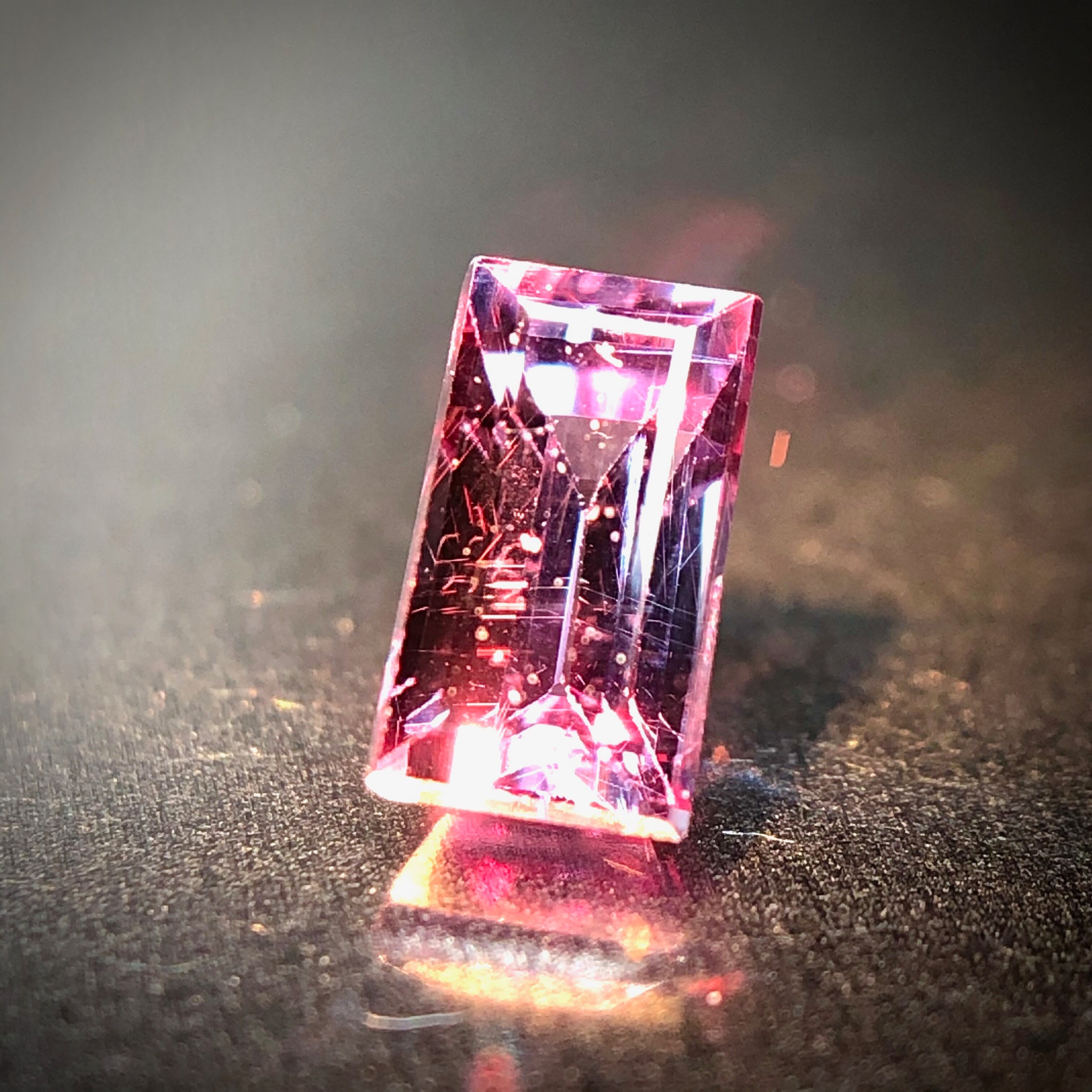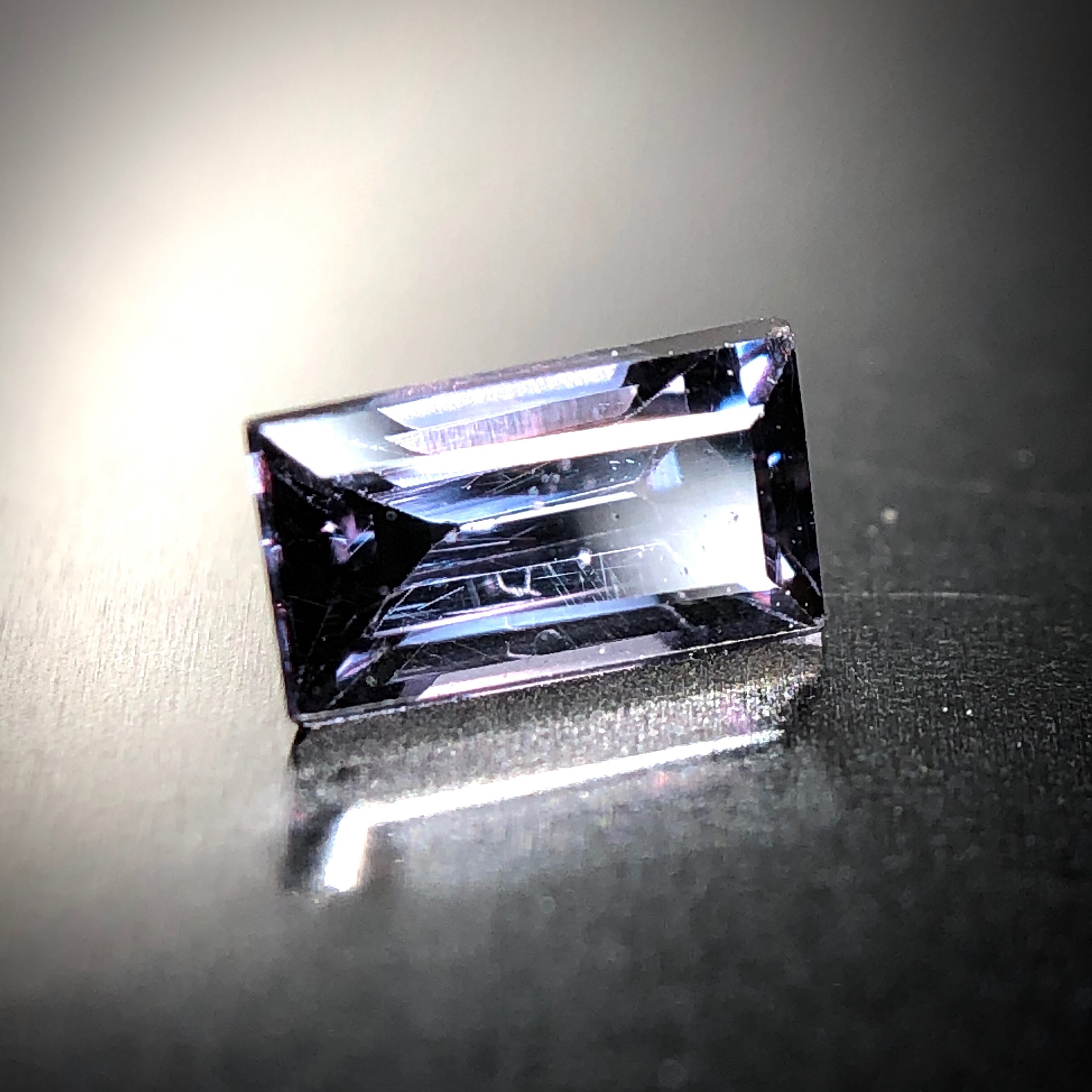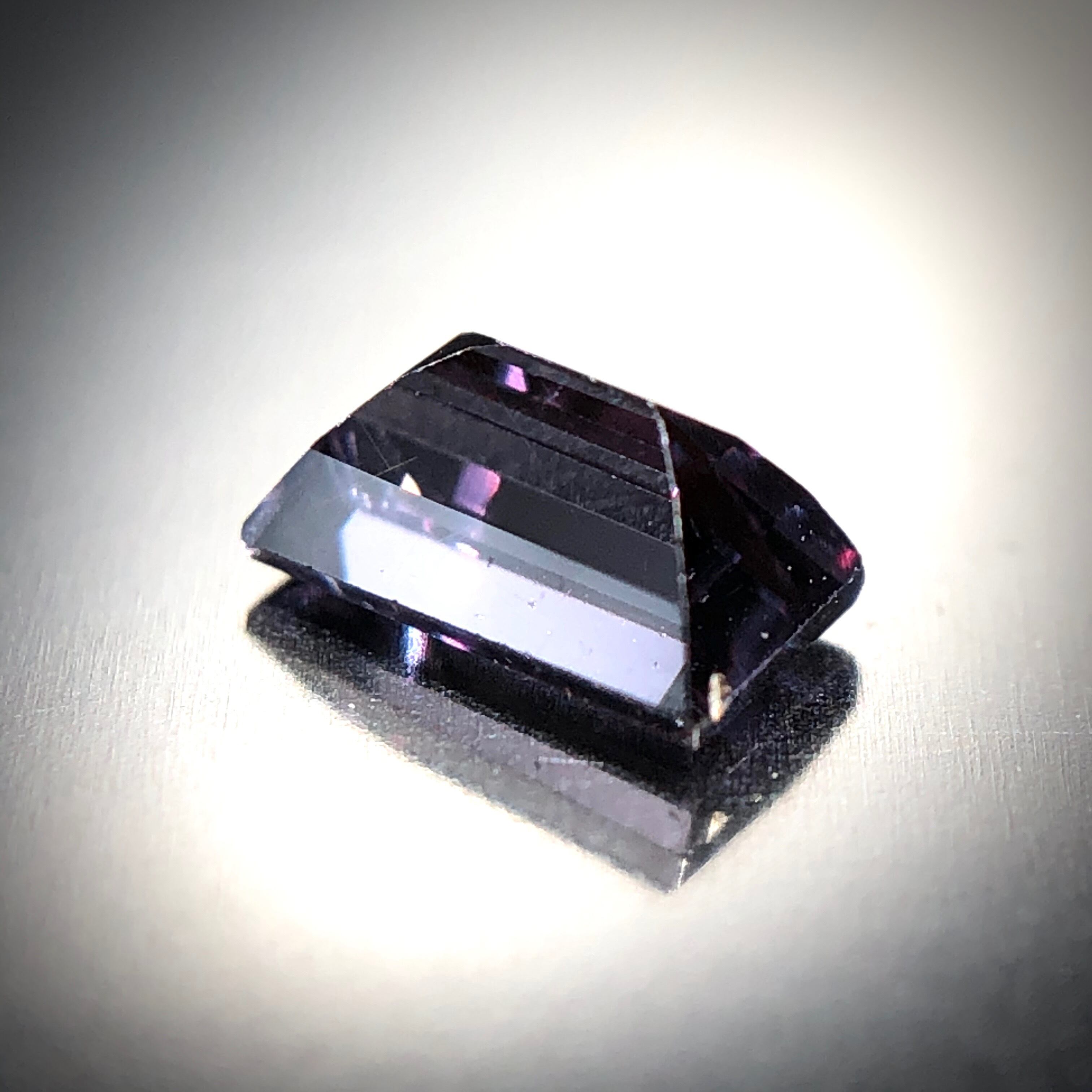 今回ご紹介するベキリーブルーガーネット、シャープなステップカットに研磨。