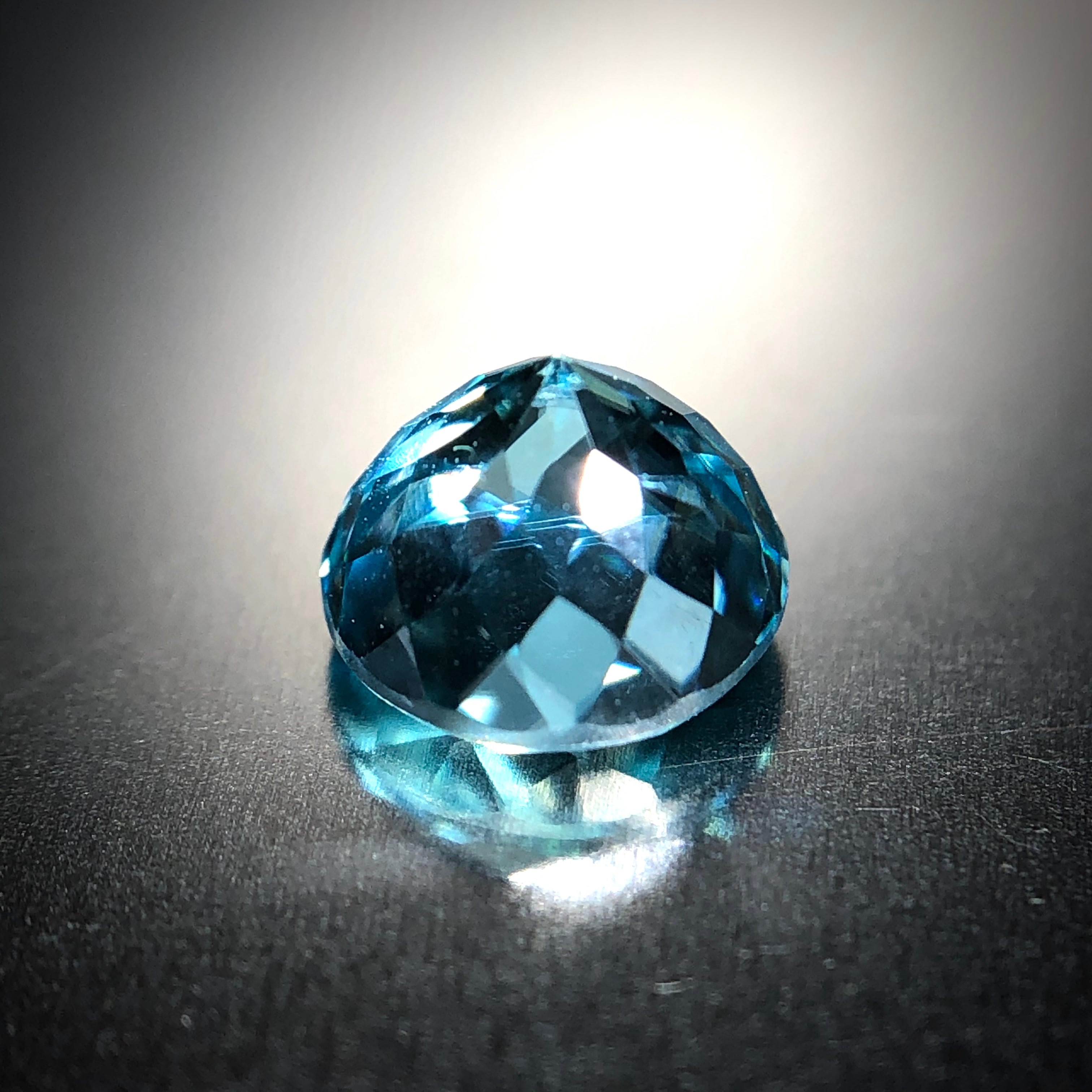 カッターは事前にどのようにファセットを施すかプランニングし、そのストーンの色を最大限に発揮させるようカットするのです。この素晴らしいアイスブルーには職人の技術力が伺えます。