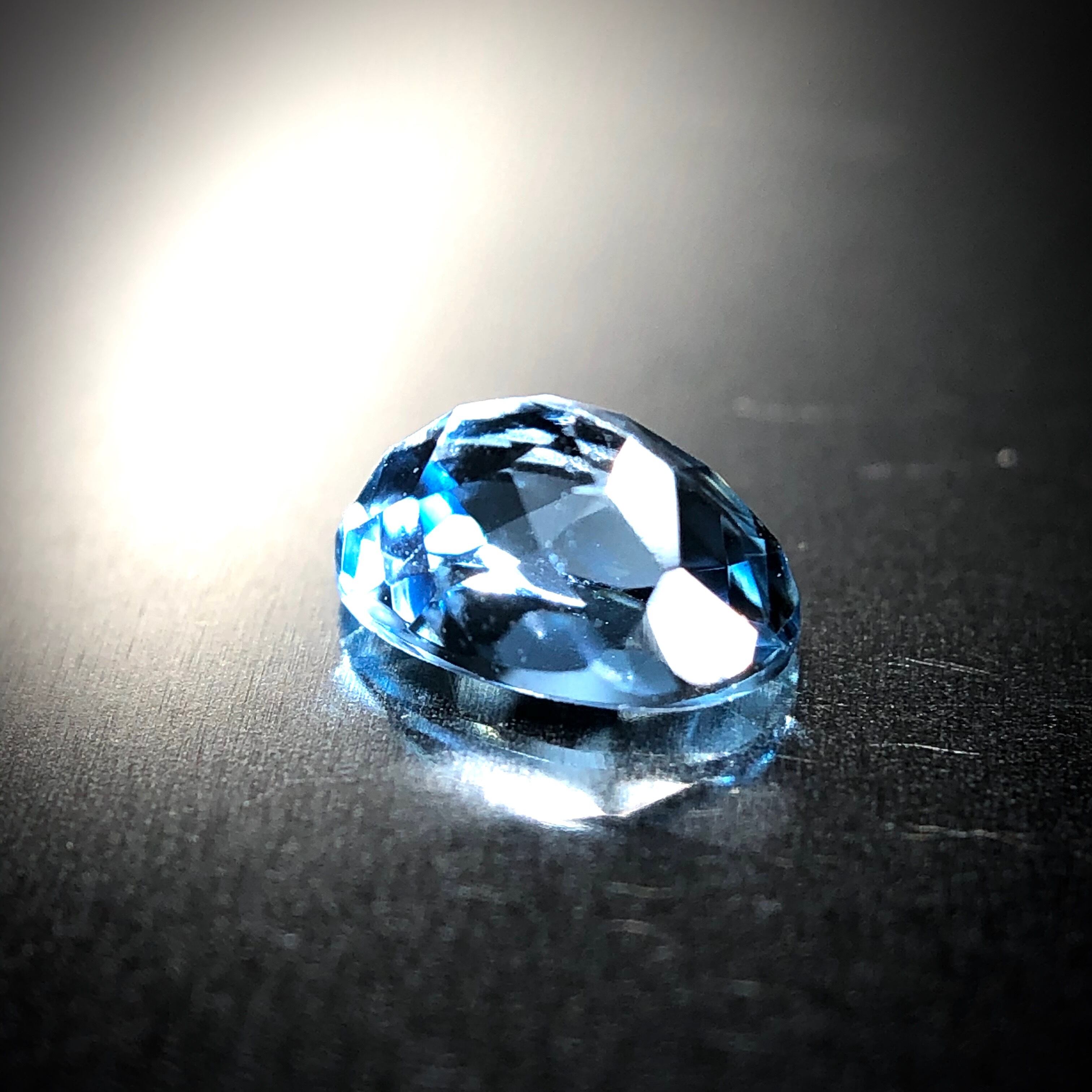 アクアマリンが本来持つ澄み切った透明感、そして「サンタマリア」ならではの深いブルーの表情。また、緻密なカットがそれらの魅力を更に引き出し、この宝石に特別な輝きを添えております。