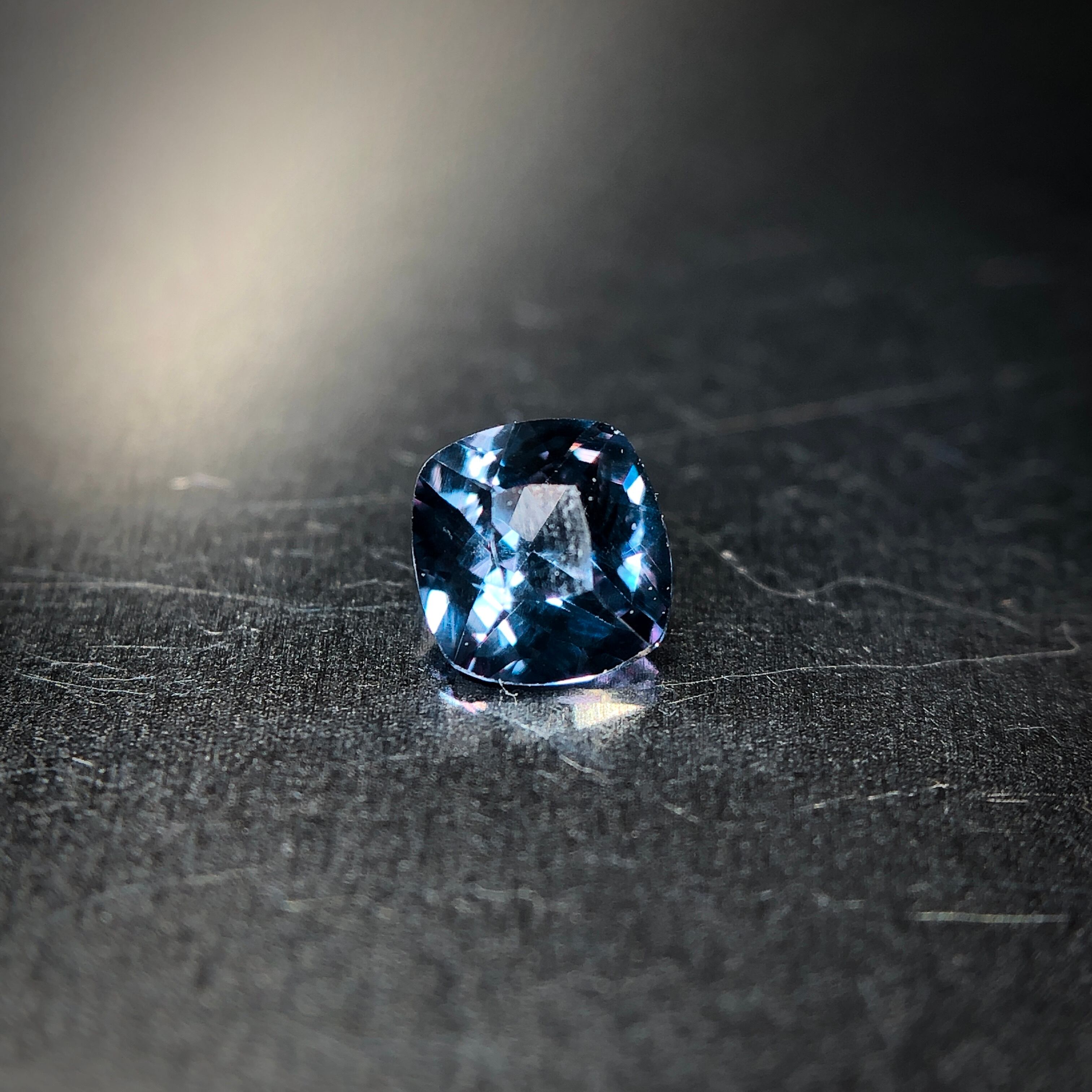 LED下では落ち着きのあるグリーニッシュブルー、そして白熱灯下では、レディッシュパープルを呈し、角度を変える度、宝石内部からラズベリーレッドのブリリアンスを放ちます。