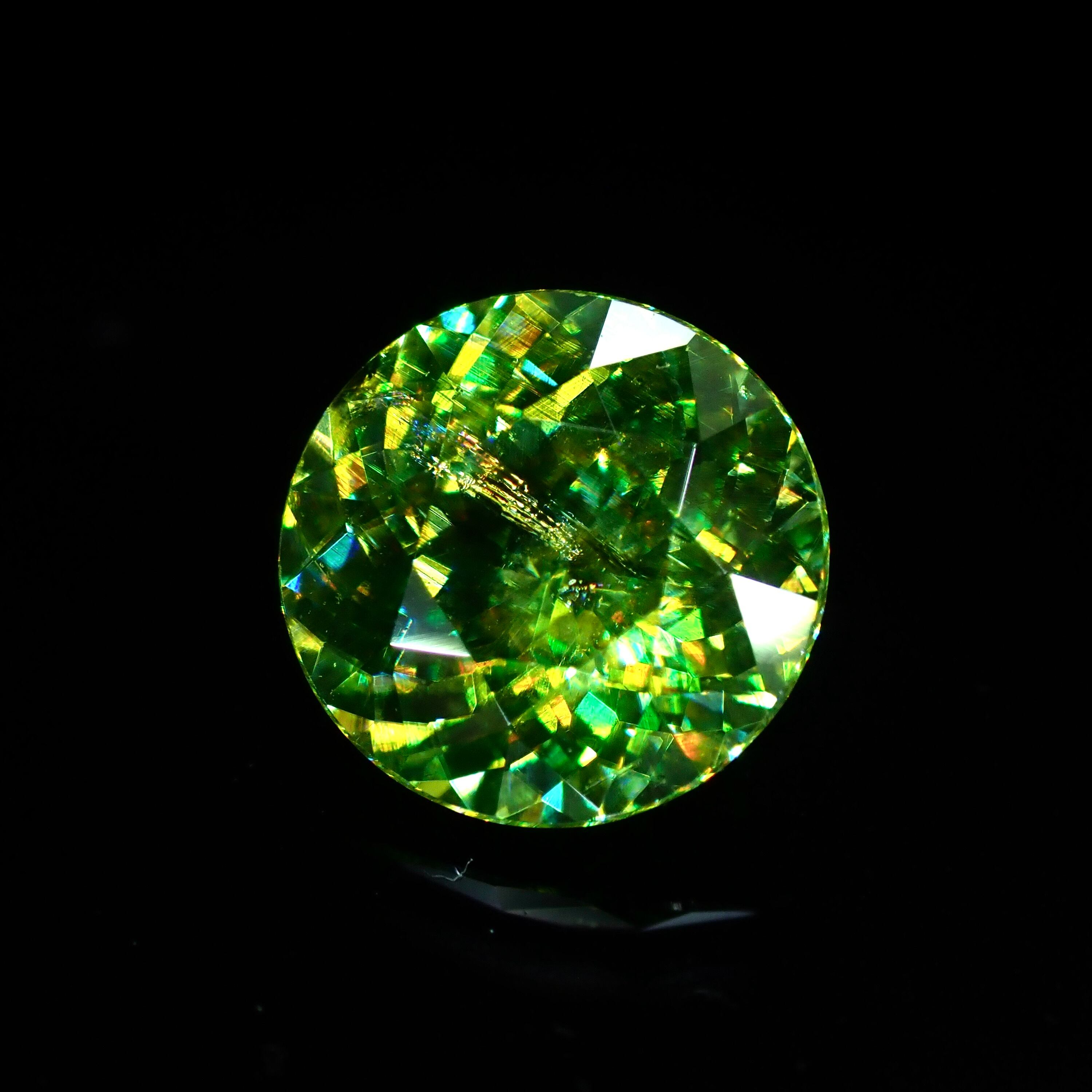 一見通常のラウンドカットに見えますが、今回はスフェーンの持つ屈折率に合わせて角度などを設計。